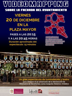 El 20 de diciembre de 1974 se publicaba oficialmente la declaración de Villanueva de los Infantes como Conjunto Histórico-Artístico, un hito que supuso la conservación del ingente patrimonio de este municipio ciudarrealeño considerado hoy en día uno de los pueblos más bonitos de España. Para conmemorar tan importante efeméride, el Ayuntamiento de Villanueva de los Infantes, a través de su concejalía de Cultura y Turismo, han organizado un espectacular videomapping que se proyectará en la fachada del consistorio infanteño. Las proyecciones de gran formato jugarán con la propia arquitectura del edificio y harán un repaso por los siglos resaltando los acontecimientos más importantes de la historia de la ciudad.